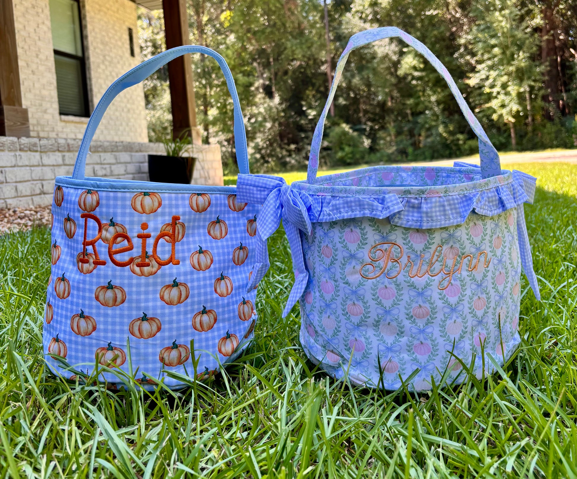 Add a dash of spooky charm with this playful Pumpkin Halloween Basket, embroidered for extra festive fun! Perfect for trick-or-treating or seasonal decorating.